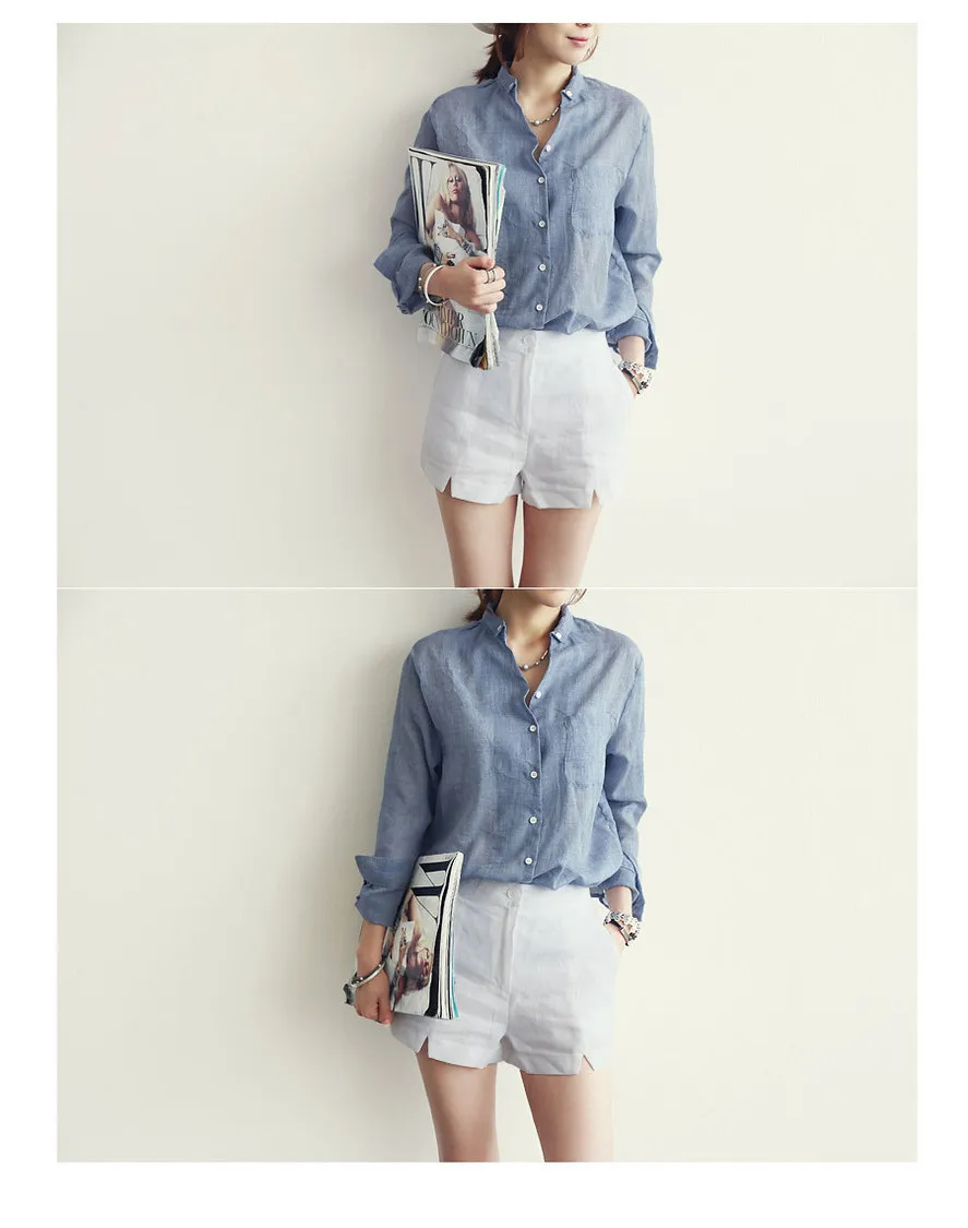 Womens Tops Fashion Linen White Shirt Women Long Sleeve Blouse Roupas Femininas